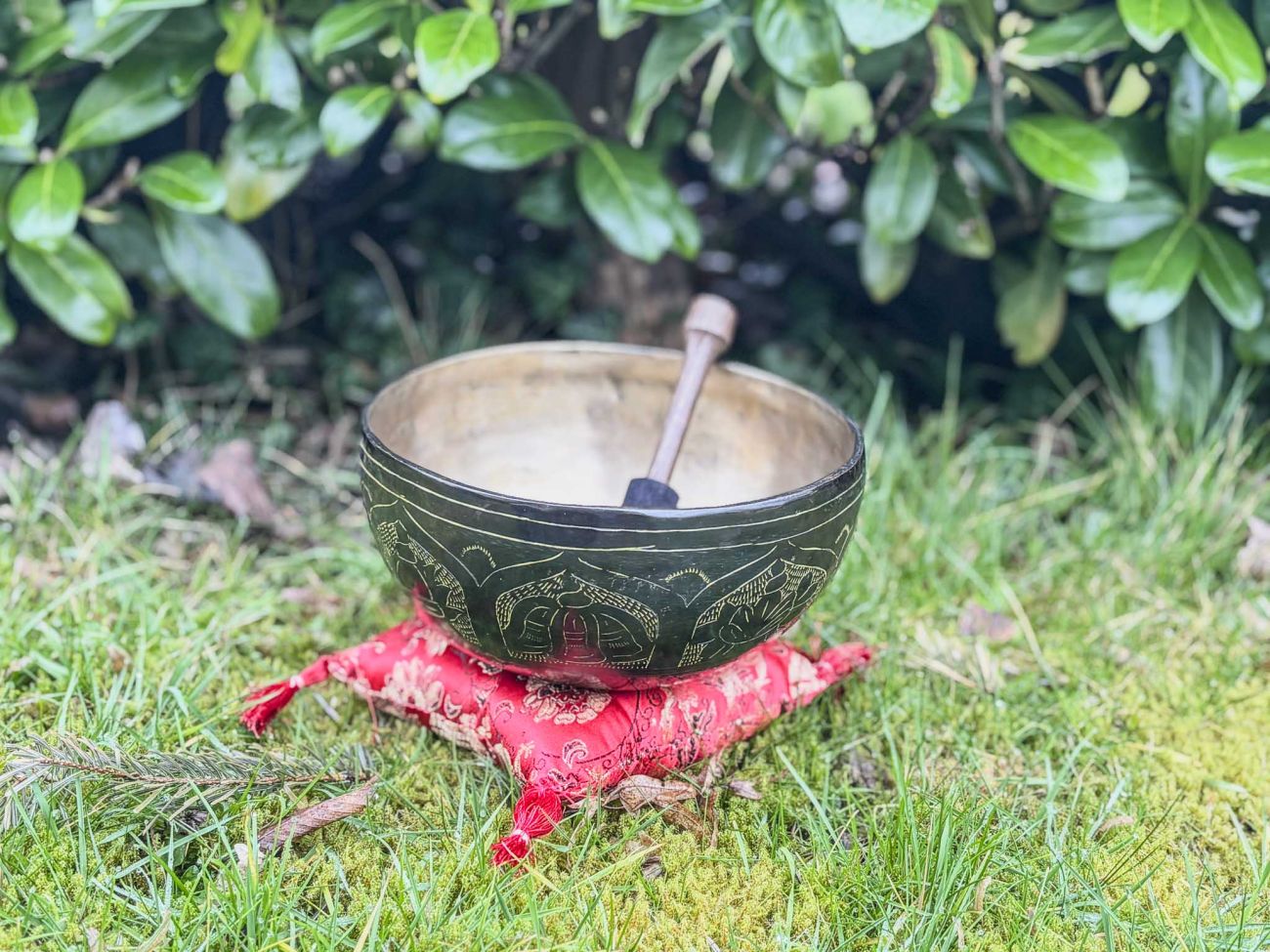 Anschließend folgt die eigentliche Klangschalenmassage, bei der du bequem liegend auf einer weichen Unterlage entspannen darfst. Du bleibst dabei vollständig bekleidet – ich empfehle lockere, bequeme Kleidung.